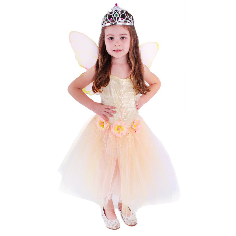 Překrásný kostým na motiv květinové víly pro všechny malé parádnice! Součástí jsou nádherné šaty, které jsou dekorovány květinkami a zlatým zdobením, ale také úchvatná třpytivá křídla. Velikost L je určena pro děvčata ve věkovém rozmezí 8-10 let (128-150 cm). Tento exkluzivní kostýmek nesmí... číst celé