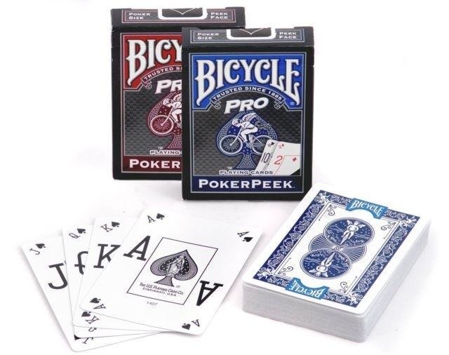 Karty Bicycle ProPeek posiadają podwójny indeks, dzięki któremu sprawdzenie "rozdanej ręki" wymaga minimalnego odgięcia kart. Dzięki temu karty z biegiem czasu nie ulegają nieodwracalnym zniszczeniom i odkształceniom.55 kart w talii.Każda talia wykonana jest z własnego, unikatowego papieru oraz...