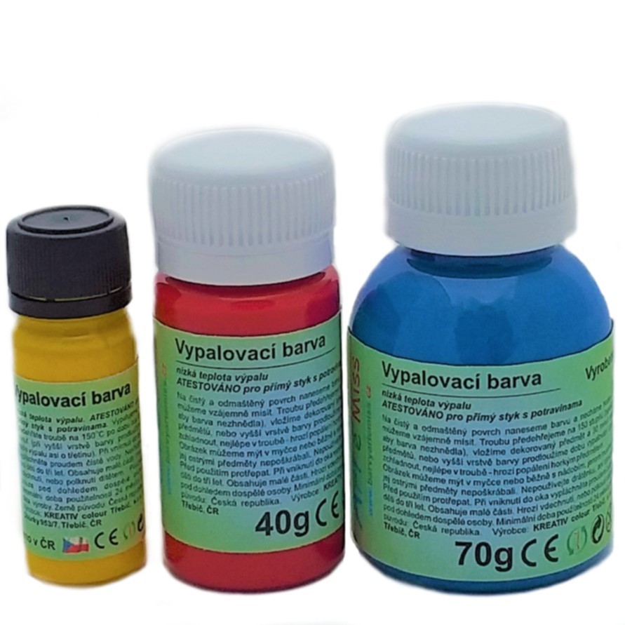 Troubu předehřejeme na 150 stupňů (teplotu pečlivě nastavíme, aby barva nezhnědla), vložíme dekorovaný předmět a 30 minut vypalujeme. U větších předmětů, nebo vyšší vrstvě barvy...