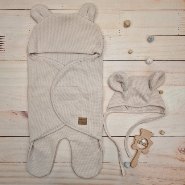 Univerzální zavinovačka, zavinovací deka + čepička, Medvídek, bavlna, šedá, 56/62; 56/62 (0-3m)