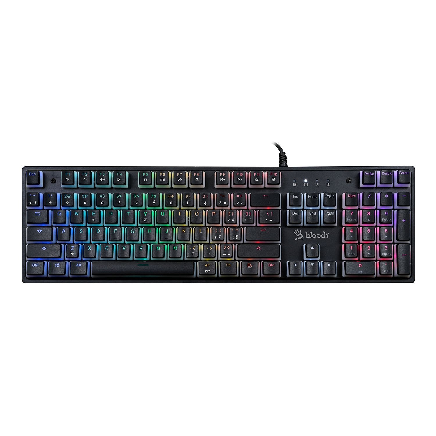 A4tech Bloody S510R podsvícená mechanická herní klávesnice, Blue Switch, pudding, USB, CZ, černá