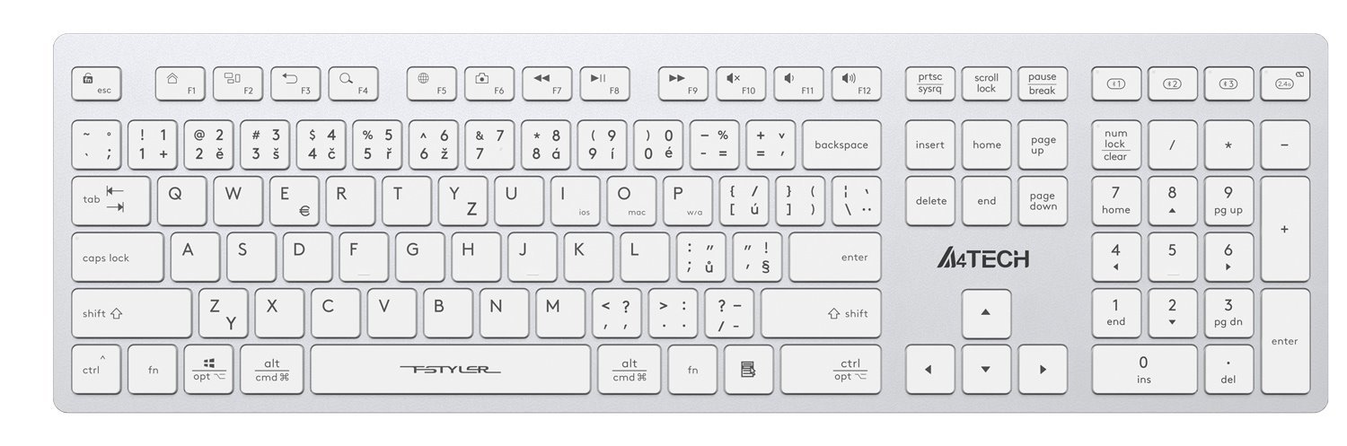 A4tech FBX50C, bezdrátová kancelářská klávesnice, bílá