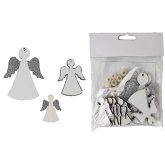 Sada obsahuje 12 andílků ve třech různých velikostech. Dvě větší velikosti jsou určeny k zavěšení, doplněné o praktické šňůrky s korálky, které zvýrazní jejich eleganci. Malý andílek poslouží jako půvabná přízdoba například na věnce, vánoční stromeček nebo dárkové balení.