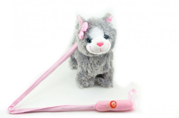 Kočka na tyčce plyš 25cm chodící na baterie se zvukem od 36 měsíců