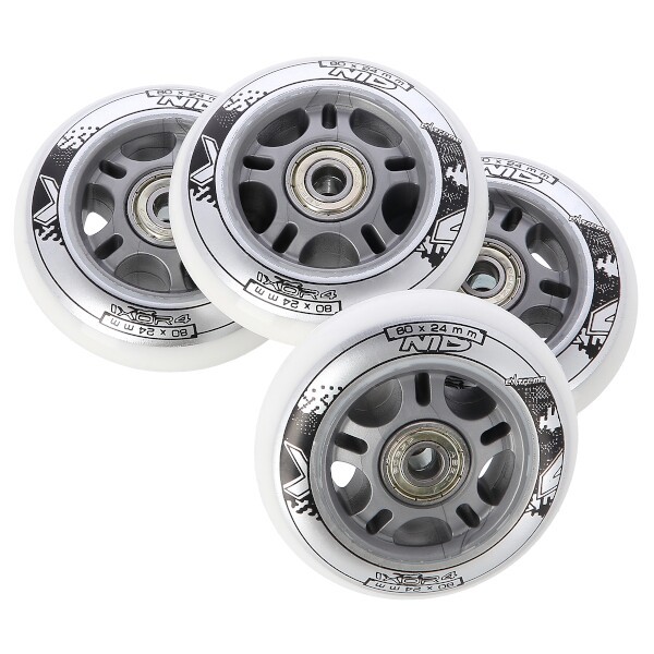 KOLEČKA PU 80x24 BÍLÉ (4KS) + LOŽISKA ABEC 7 (8KS) SESTAVA NILS EXTREME