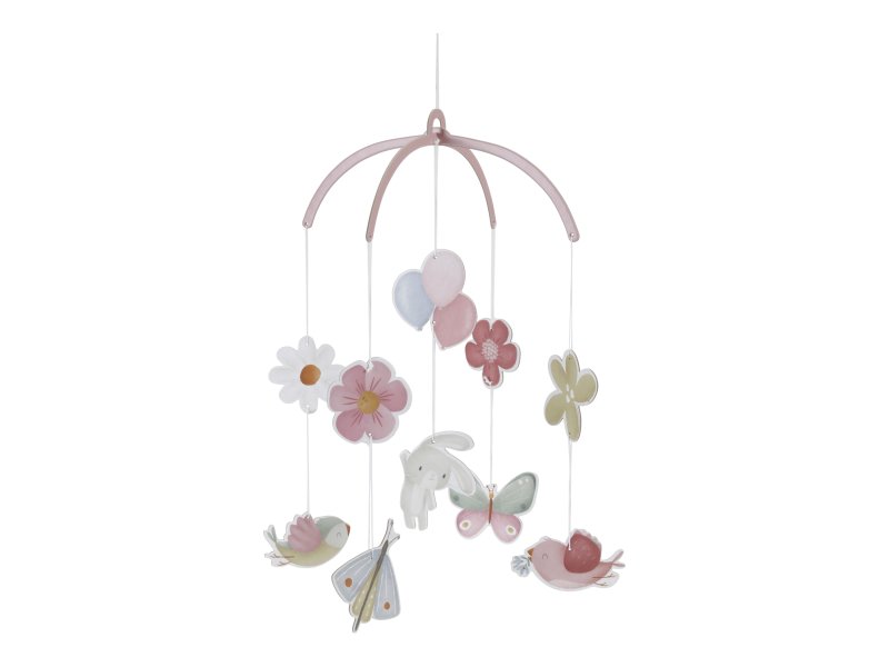 Tento jedinečný kolotoč je součástí kolekce Little Dutch Květiny a motýli, která nabízí ucelený sortiment dětského textilu, hraček a dekorací laděných v něžných přírodních motivech. Zavěšené motivy ptáčků, motýlů a květin jsou vyrobené z kvalitního, pevného kartonu a pomocí praktické šňůrky snadno upevníte kolotoč ke stropu dětské postýlky.