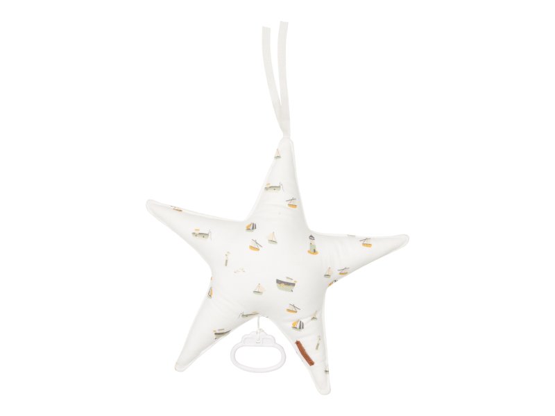 Závěsná hvězda s natahovacím hudebním boxem hraje příjemnou melodii pro lepší usínání vašeho miminka.Hvězda z textilního materiálu je součástí designové kolekce Little Dutch Námořnický záliv a slouží i jako krásná dekorace dětského pokoje.Vhodné pro děti od narození. číst celé