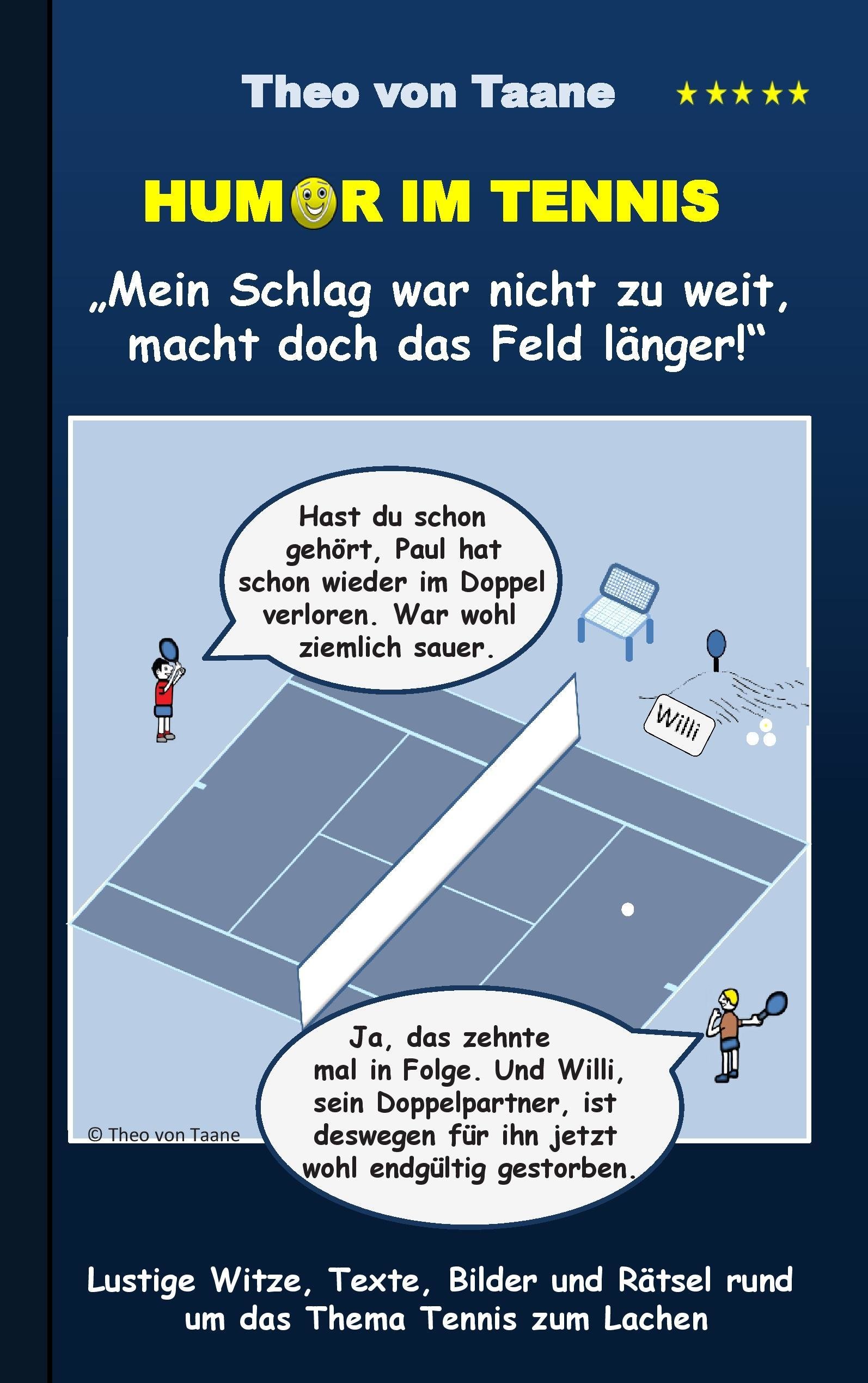 Humor im Tennis \"Mein Schlag war nicht zu weit, macht doch das Feld länger!\" (německy)