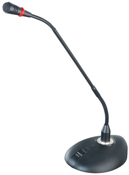 Stolní kondenzátorový mikrofon na 38cm husím krku s podstavcem a vypínačem. Hyperkardioidní charakterisitika. Napájení ze dvou 1,5V baterií nebo 48V fantomové napájení. Konektor XLR. číst celé