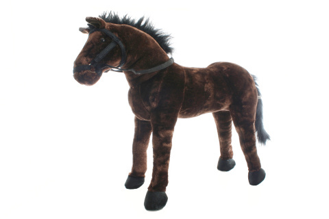 Velký plyšový kůň s uzdičkou a otěžemi. Kůň má stabilní kostrukci na hraní i sezení. Nosnost 100 kg. Rozměry cca 70 x 60 x 20 cm. Věk 3+ číst celé