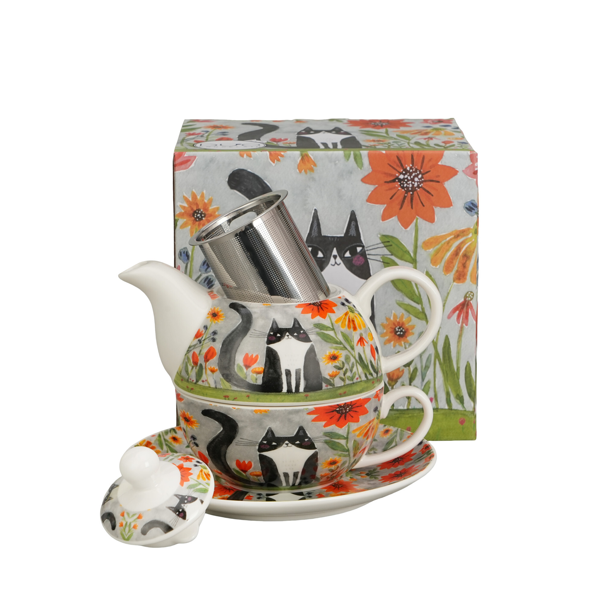 Filiżanka z dzbankiem z zaparzaczem ze stali nierdzewnej Koci Świat ŁĄKA