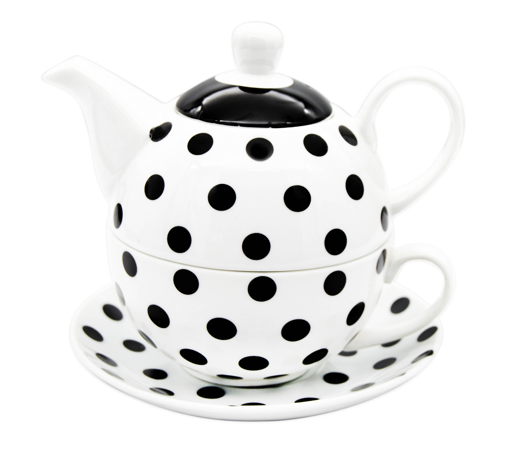 Sada keramické konvice s víčkem a hrnek s podšálkem dekor puntík.