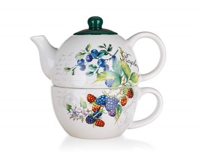 Konvička se šálkem RASPBERRY jsou vyrobeny z keramiky v bílé glazuře s dekorem maliny a zeleným víčkem konvice. Objem konvice je 360 ml a objem šálku 330 ml. Konvici se šálkem je možné mýt v myčce na nádobí, ale pro zachování dokonalého vzhledu, doporučujeme umývat ručně. číst celé