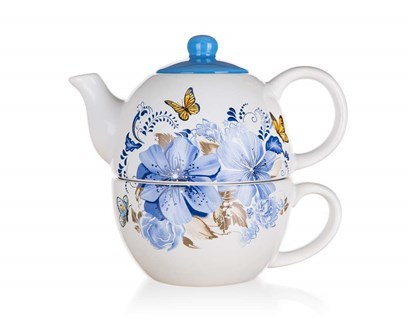 Konvička se šálkem BLUE FLOWER jsou vyrobeny z keramiky v bílé glazuře s dekorem modrých kytek a modrým víčkem konvice. Objem konvice je 360 ml a objem šálku 330 ml. Konvici se šálkem je možné mýt v myčce na nádobí, ale pro zachování dokonalého vzhledu, doporučujeme umývat ručně. číst celé
