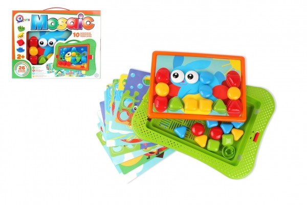 Mozaika pro nejmenší, velikost kolíčku 35 mm a 10 barevných šablon (předloha k umisťování kolíčků). Obsahuje 26 barevných kloboučků, které se skládají na podkladovou desku s předtišněným motivem mají různé tvary, dokážou vytvořit nádherné obrázky. Díky velkým dírám a kolíčkům nebudou mít ani ti...