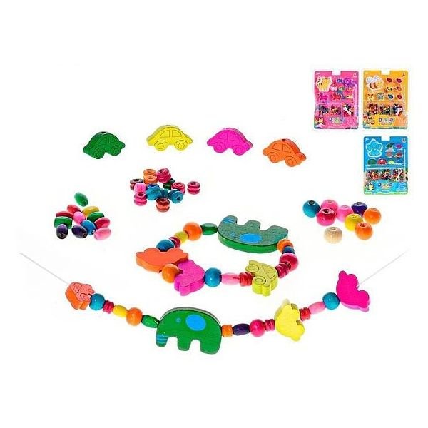 Korálky navlékací dřevěné 3barvy na kartě Barvy: žlutá, růžová, modrá Rozměr: Věk: 3+ Materiál: dřevo číst celé