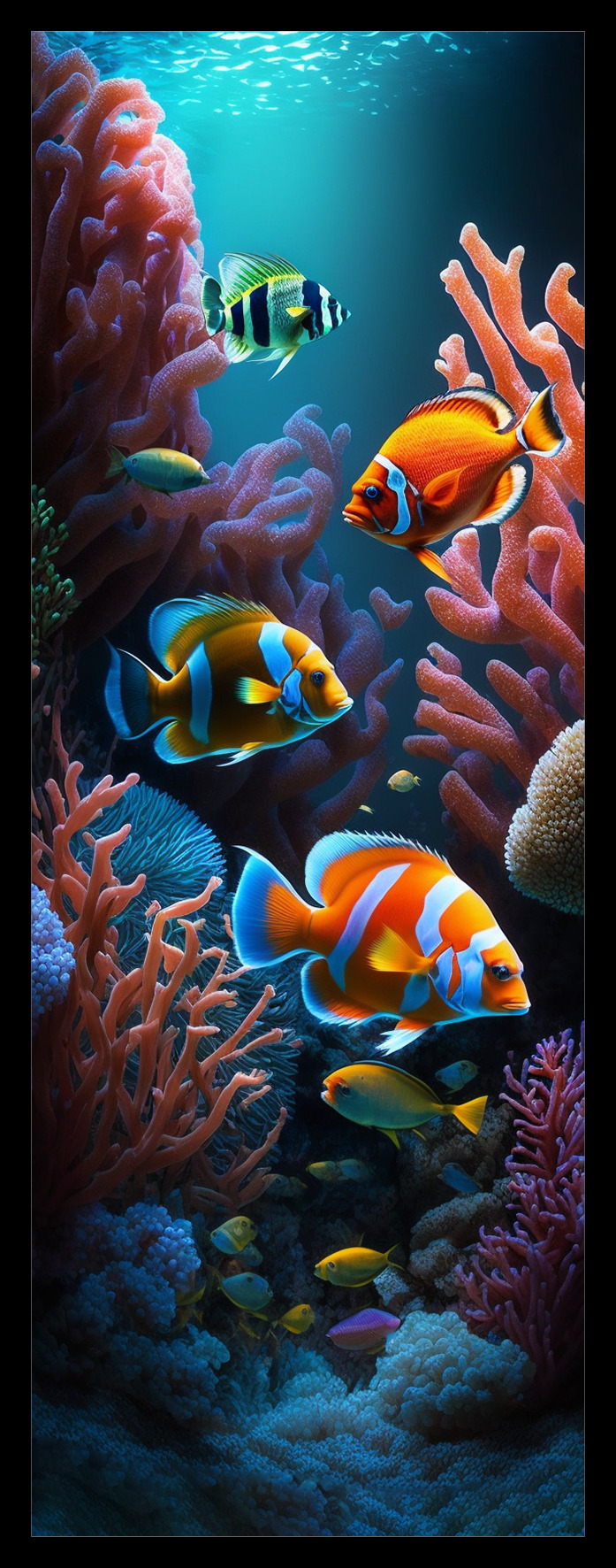 - Motiv: Korálový útes s barevnými korály