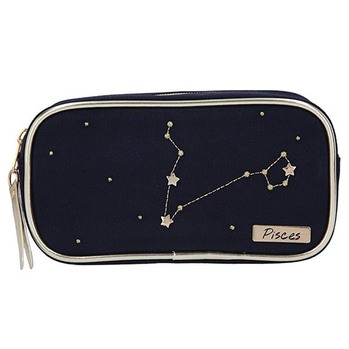 V této kosmetické taštičce si snadno vezmete svůj make-up nebo psací potřeby s sebou. Taštička má modrou barvu se zlatými detaily a se znamením zvěrokruhu Ryby. Uzavíratelná na zip.Rozměry: 19 cm x 10 cm x 6,5 cm. číst celé