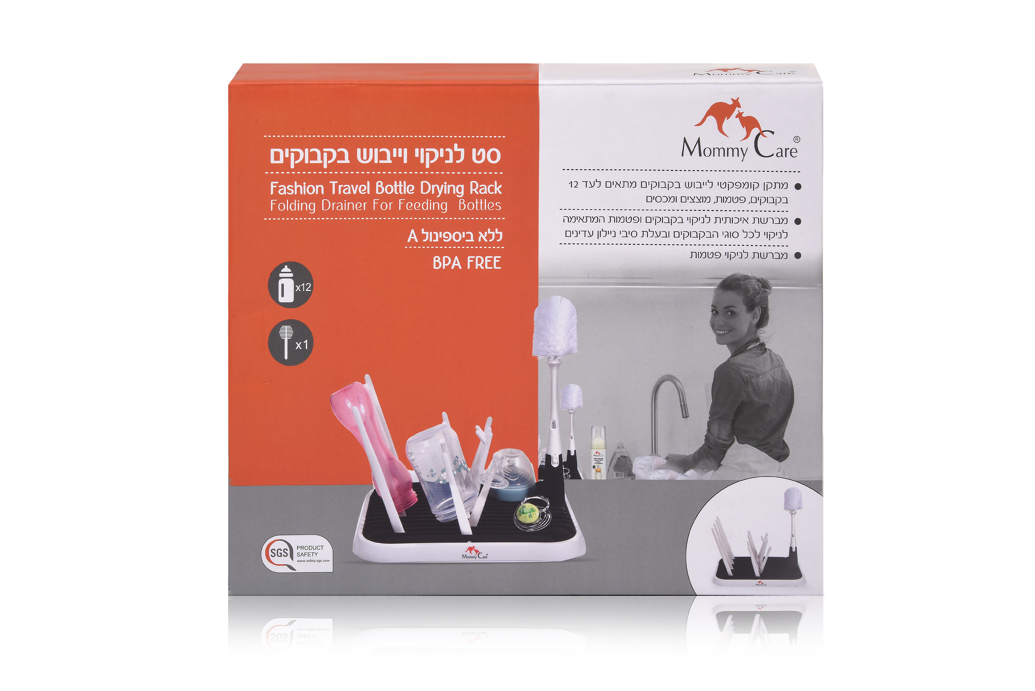 Mommy Care - Cestovní sada na sušení kojeneckých lahví s mycím kartáčem