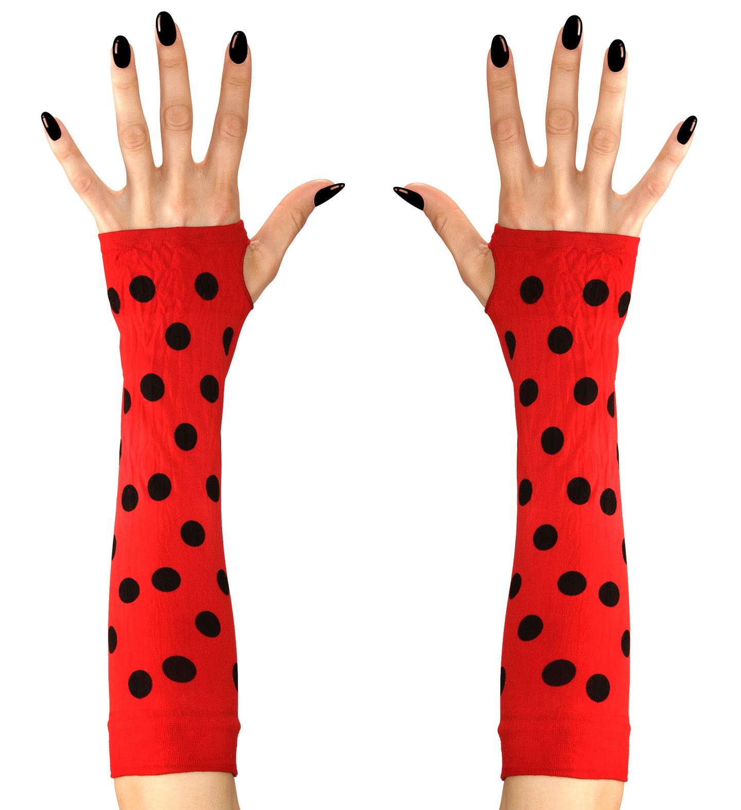 Tyto stylové návleky na ruce v designu červené berušky s černými tečkami jsou perfektním doplňkem pro děti i dospělé, kteří chtějí přidat do svého vzhledu hravý a originální prvek. Bezprstové provedení zaručuje pohodlí a snadnou manipulaci s věcmi během nošení.
