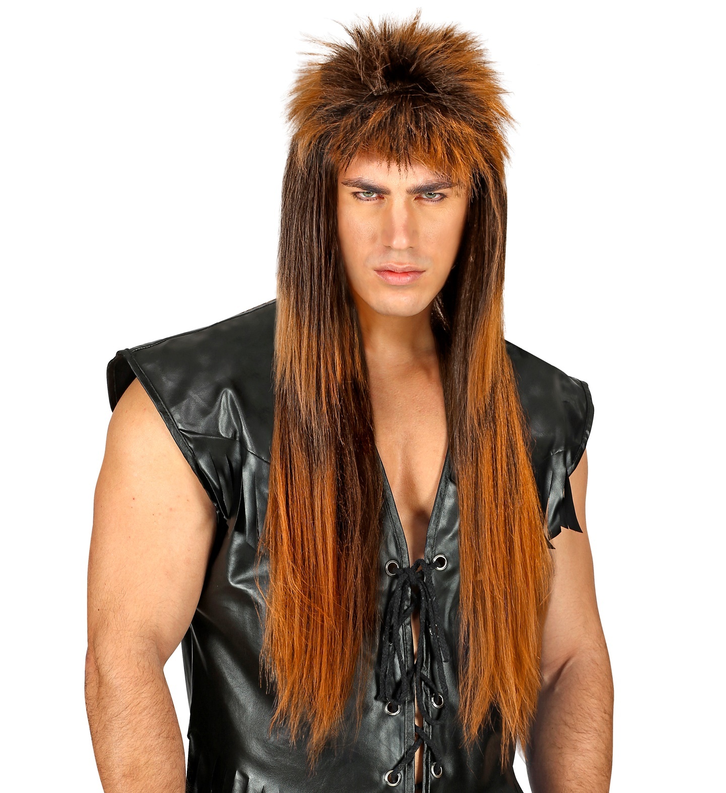 Paruka rokerská, strakatá, dlouhá. Barva: hnědá Materiál: 100% polyester Určeno pro: pánská Typ paruky: dlouhá číst celé