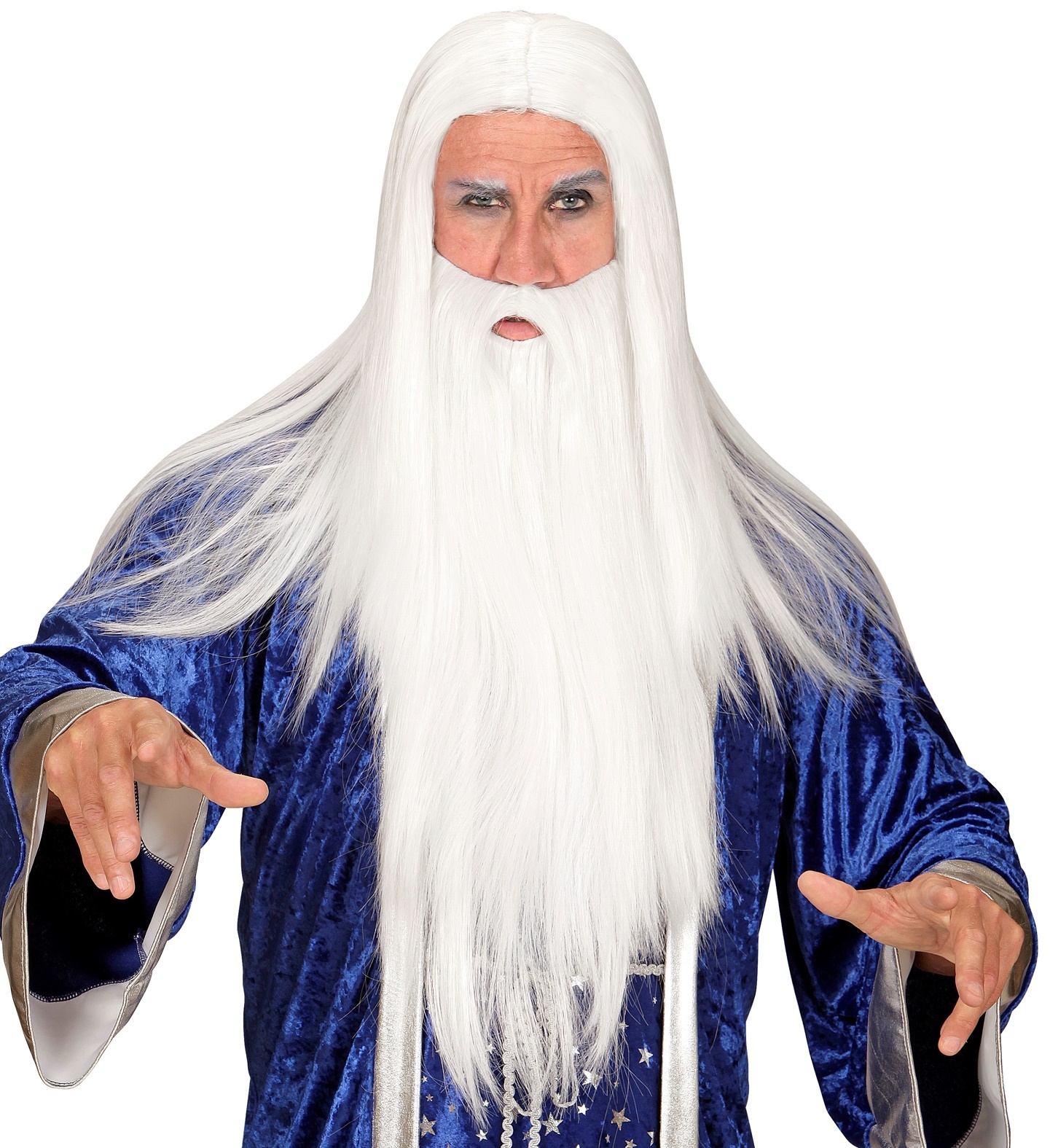 Karnevalová paruka s vousy čaroděje. Paruka mága, čaroděje a dalších mytologických postav. Barva: bílá Materiál: 100% polyester Určeno pro: pánská Typ paruky: dlouhá rovná číst celé