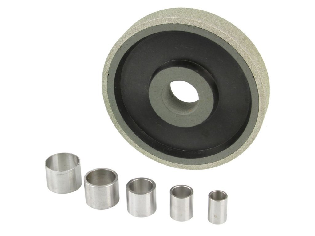 Diamantový brusný kotouč pro ostření a broušení. Určeno pro použití ve stolních bruskách. Součástí kotouče jsou redukce pro různé středové otvory kotoučů.