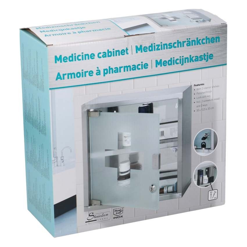 Lékárnička na zeď nerez ocel / sklo 30x12,5x30cm