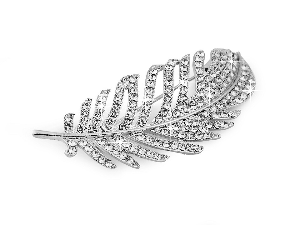 Tato třpytivá brož je vyrobena ve tvaru lehkého pírka a je kompletně osázena leštěnými kamínky, které podtrhují její jemnou eleganci. Na zadní straně je bezpečný brožový špendlík s pojistkou proti nechtěnému otevření, takže ji můžete bezpečně připnout na oblečení bez obav z jejího ztracení. Brož je víceúčelová - skvěle poslouží nejen na oděvech různého stylu, ale také na kloboucích, taškách nebo ji využijete ke sponkování šátku, čímž váš outfit získá na originalitě a ženském půvabu.