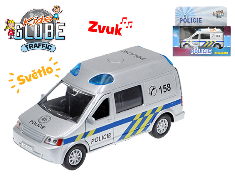 Auto policie CZ 13cm kov zpětný chod na baterie se světlem a zvukem v krabičce