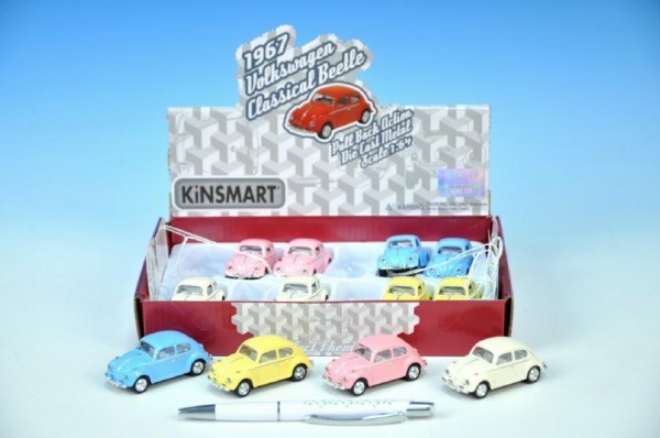 Auto Kinsmart VW Classical Beetle 1967 1:64 kov 6cm zpětný chod, 4 barvy - 1 kus