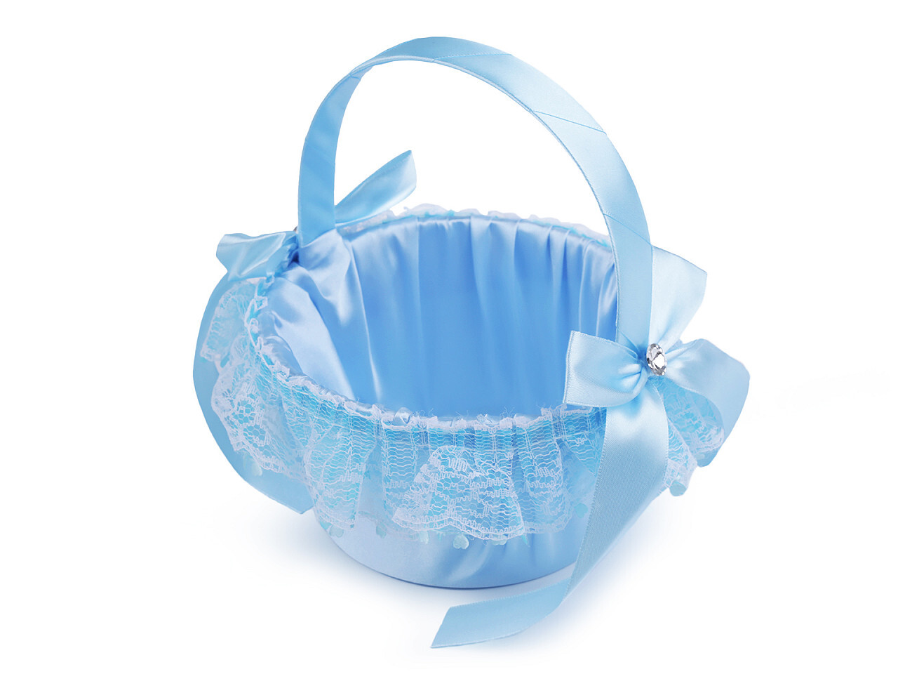 Svatební saténový košíček pro družičky - 1 ks - 3 modrá světlá