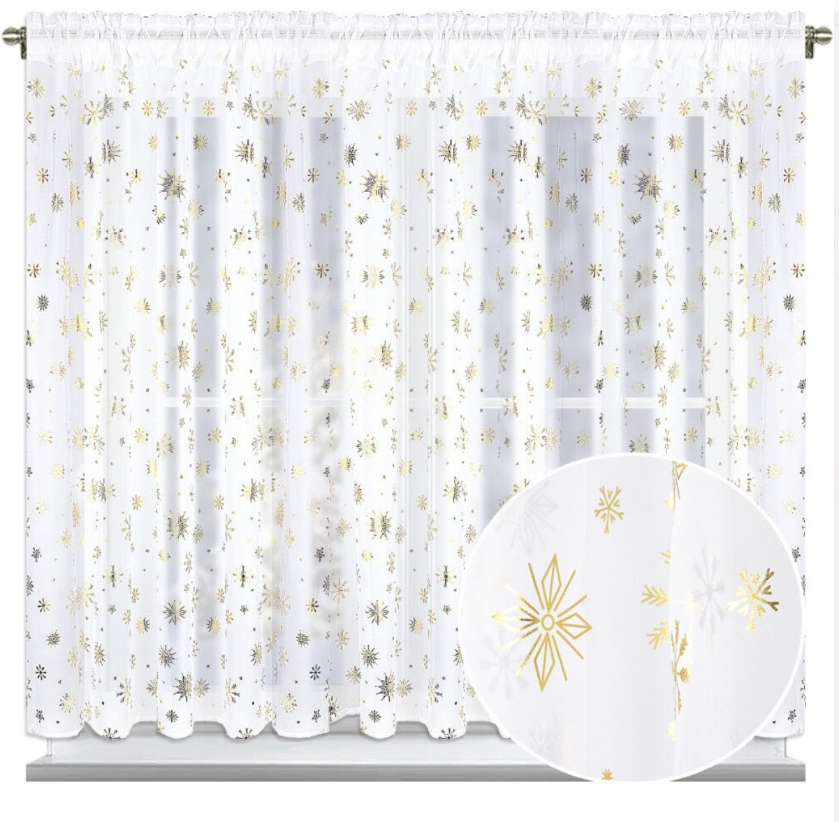 Vánoční dekorační krátká záclona s řasící páskou WINTER TIME II. bílá/zlatá 400x150 cm MyBestHome