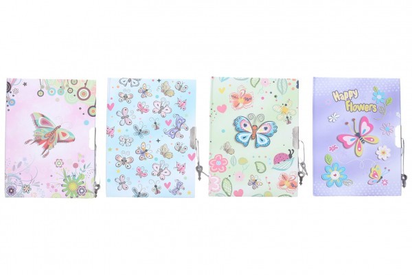 Památník se zámkem o veliksoti 11x15 cm Motýl. Nelinkovaný. 4 různé motivy číst celé