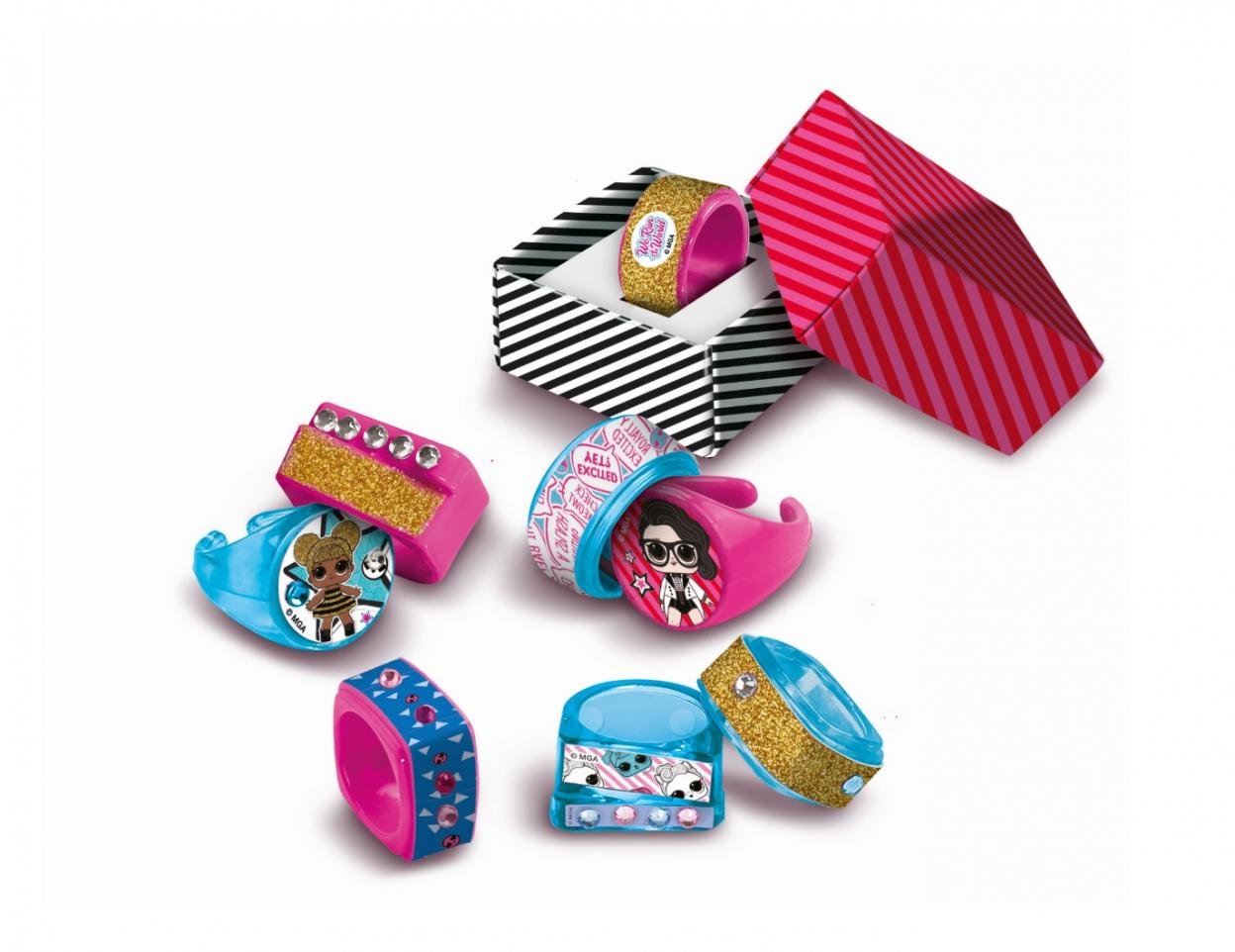 Kreatywny zestaw do dekorowania cudownych pierścionków z serii L.O.L.!Zestaw zawiera wiele kolorowych, plastikowych pierścionków, które można personalizować za pomocą naklejek oraz ikon przedstawiających ulubione laleczki, a także przylepnych klejnotów.Zestaw stymuluje umiejętności manualne... číst celé