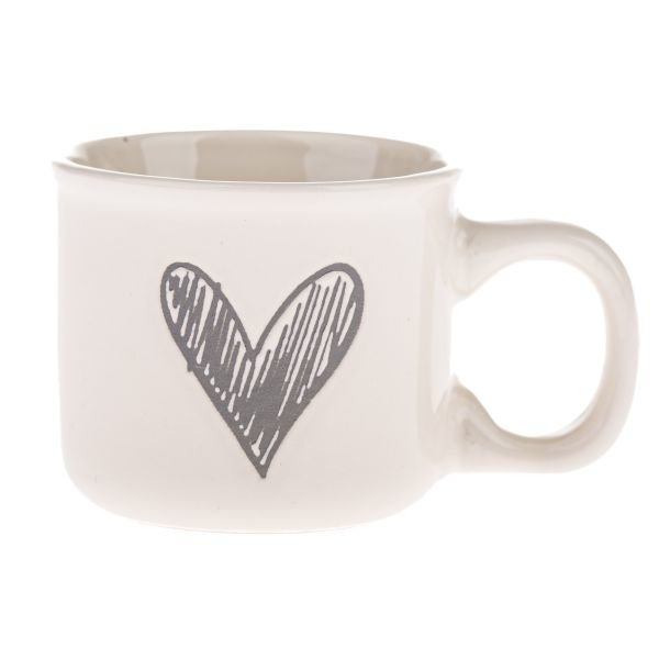 Keramický hrnek se srdcem, bílý se šedou, 90ml, 12/96