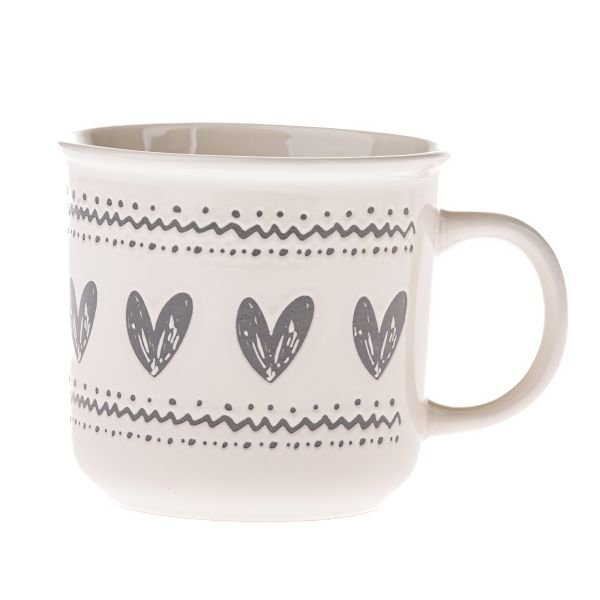 Keramický hrnek se srdci, bílý se šedou, 450ml, 6/36