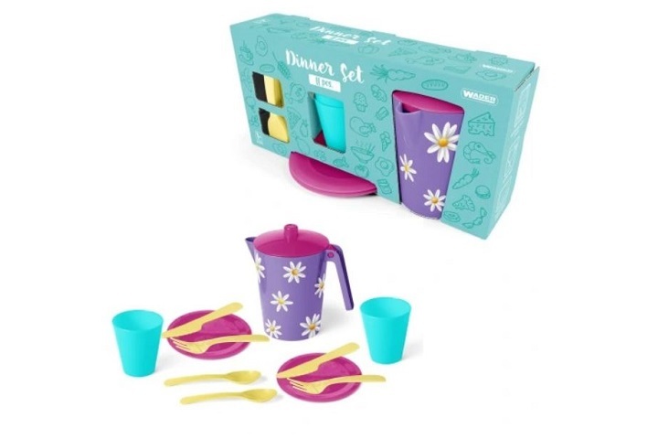 Zestaw naczyń obiadowy spodoba się każdemu miłośnikowi zabaw w gotowanie i organizowanie przyjęć i będzie doskonałym uzupełnieniem dziecięcej kuchni. Zestaw składa się z 11 elementów: dzbanka z grafiką IML, 2 kubków, 2 talerzyków, 2 widelców, 2 noży i 2 łyżeczek. Całość jest starannie wykończona...