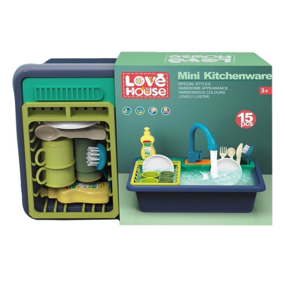 Dětský zlew je navržen tak, aby umožňoval plnění vodou i s nádobím, které si děti mohou samy umýt a poté uschovat na praktické místo na sušení. To podporuje nejen zručnost a samostatnost, ale také hygienické návyky již od útlého věku. Pro provoz jsou potřeba dvě baterie typu AA, které nejsou součástí balení.