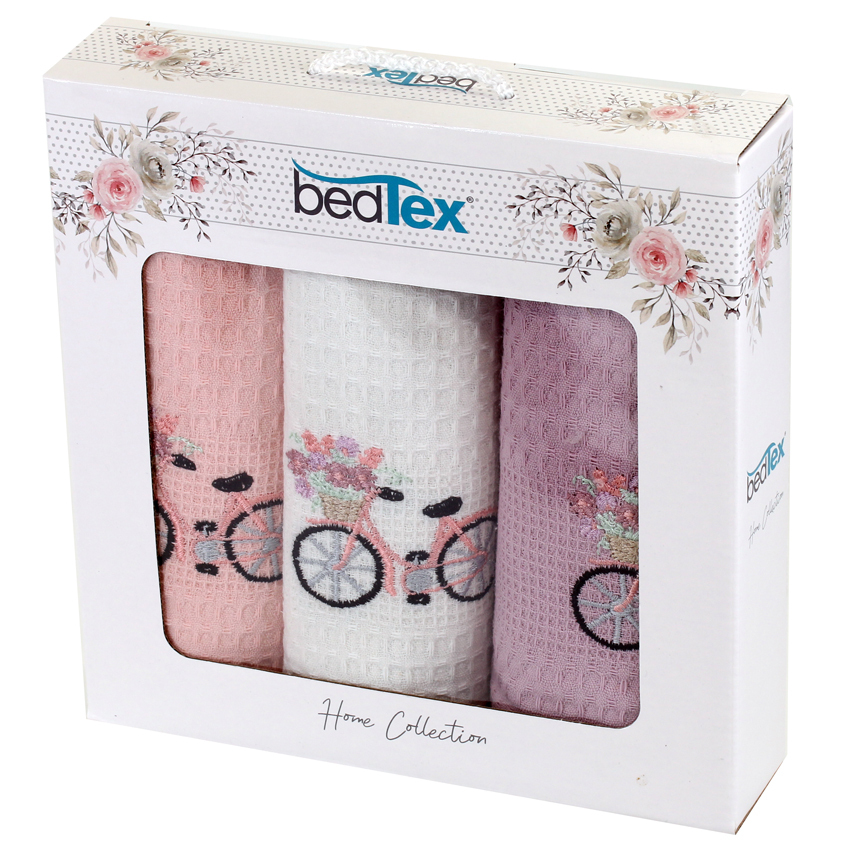 Dárková sada 3 ks vaflových utěrek s BicyklemDárková sada vaflových utěrek, je vyrobena ze 100% bavlnyVaflový vzor je textilie s plastickým povrchem, kdy hustě provázaná místa tvoří ve tkanině prohloubeninyTento výrobek je vysoce savýUtěrky jsou v balení ve třech barvách a to bílé, růžové a...
