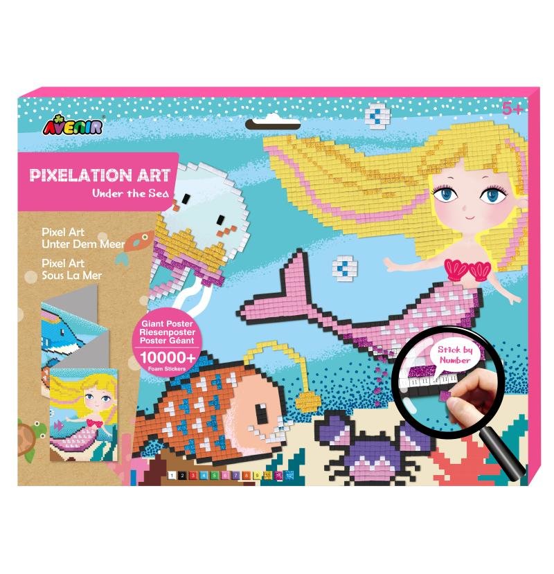 Pixelový obrázek MAXI - Mořská víla je skvělou volbou pro děti i dospělé, kteří chtějí rozvíjet svou trpělivost, jemnou motoriku a smysl pro detail. Spojte malé samolepky se správně očíslovanými čtverci a sledujte, jak se pod vašimi prsty zrodí živý obraz plný brilantních barev a krásných transportních vzorů.