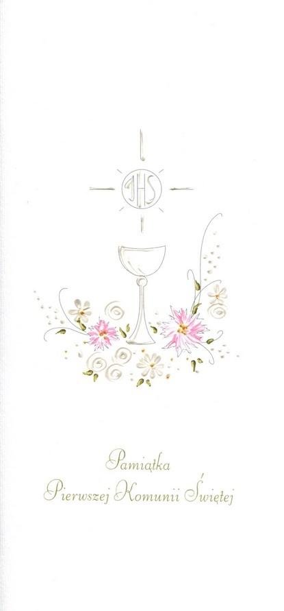 Karnet Komunia Kielich różowy MAK