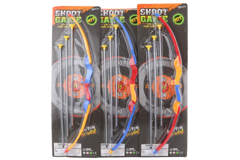 Plastový luk se třemi šípy s přísavkami. Z karty lze vystřihnout terč. Rozměry luku 59 cm. Rozměry balení cca 21 x 65,5 x 3 cm. Věk 3+ číst celé