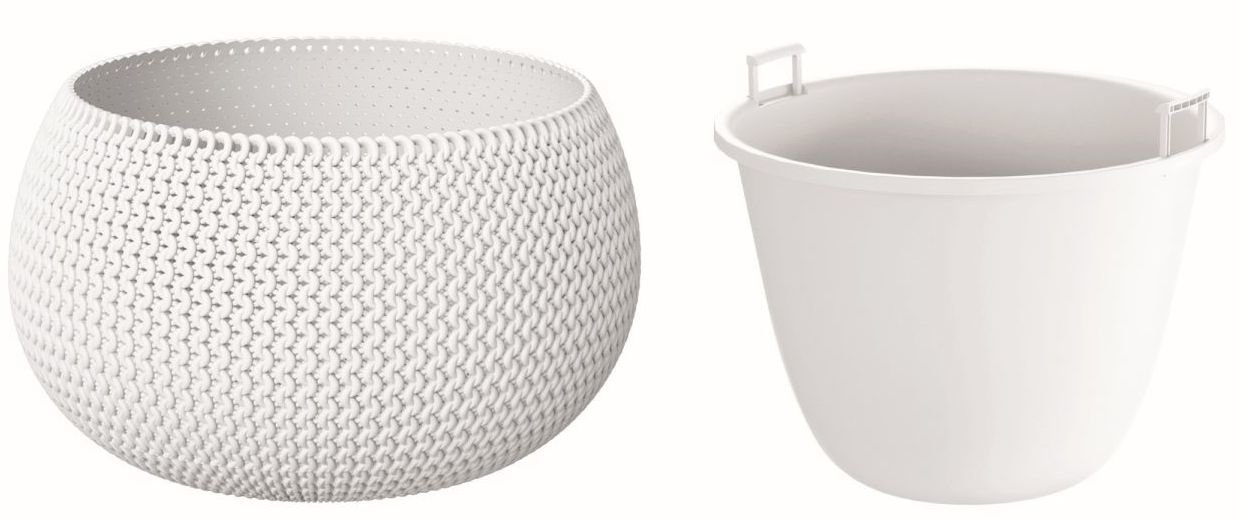 Díky příjemné textuře povrchu, která věrně imituje úplet z příze, získává tento květináč moderní a zároveň útulný vzhled. Jeho neutrální bílá barva se snadno sladí s jakýmkoliv interiérem i exteriérem. Součástí balení je praktická vložka na zasazení rostlin, která usnadňuje péči a manipulaci s rostlinou.