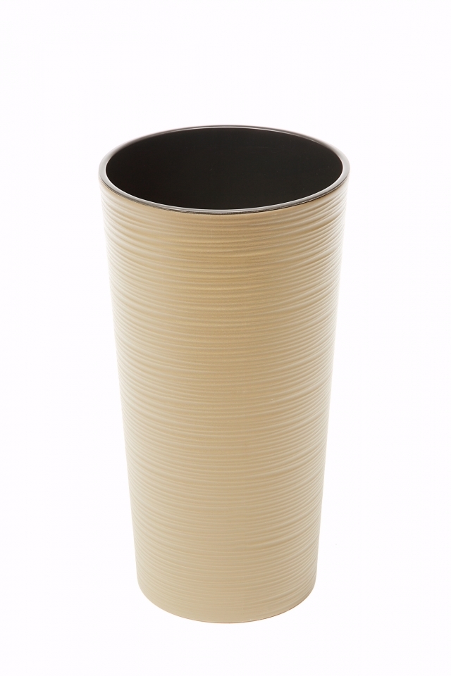 Vysoký plastový květináč vroubkovaný s matným povrchem, kónického tvaru a s vyjímatelnou černou plastovou vložkou. Do plastové vložky můžete rostliny přímo sadit a můžete si také ke květináči koupit zvlášť zamozavlažovací systém díky kterému budete mít zálivku stále pod kontrolou. Barva:... číst celé