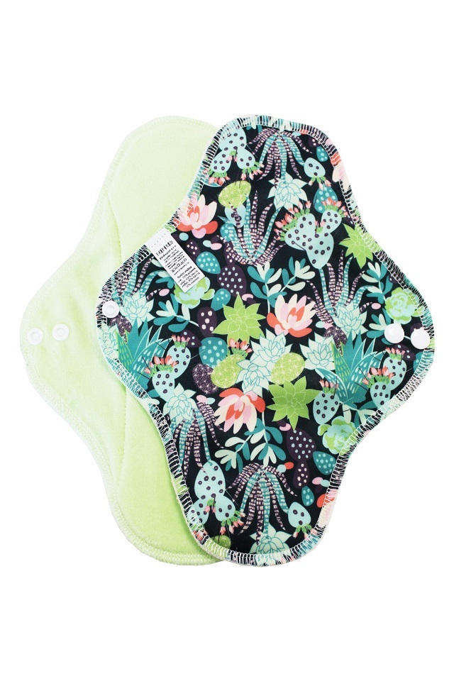 Noční vložka (PUL) - Kaktusy a sukulenty, sv. zelený velur (kojenecký plyš)