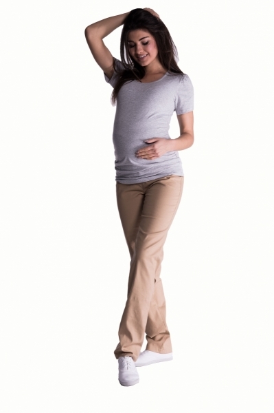 Be MaaMaa Bavlněné, těhotenské kalhoty s regulovatelným pásem - béžové