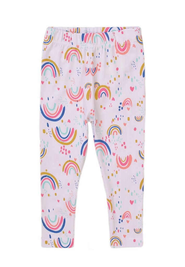 Dívčí bílé  legíny s potiskem duhy.Materiál: 94% bavlna, 6% elastan číst celé