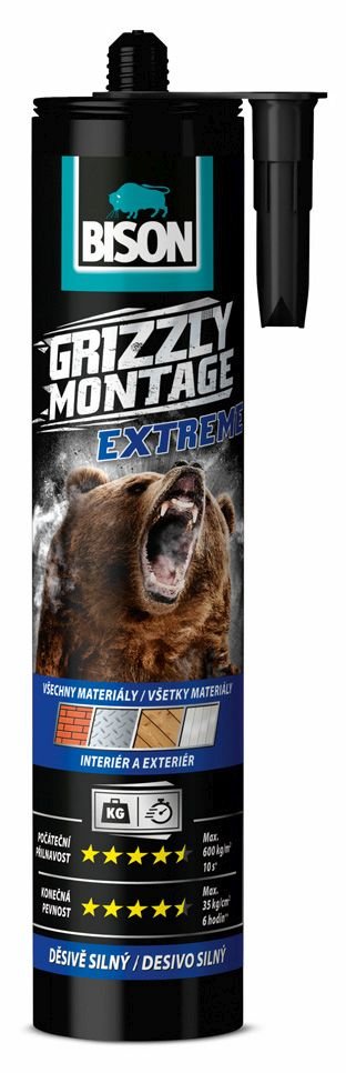 Bison Grizzly Montage Extreme je spolehlivé montážní lepidlo, které vám umožní pevně spojit různé materiály během okamžiku - bez ohledu na to, zda pracujete v domácnosti, dílně nebo na stavbě.