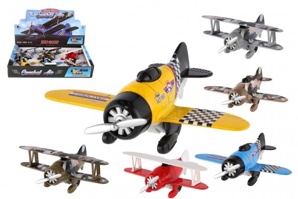 Letadlo kov/plast 12cm na zpětné natažení mix druhů 6ks v boxu
